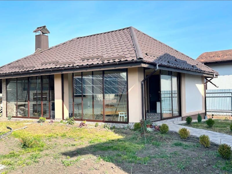 Затишна альтанка-тераса окремо від будинку з каміном та зоною для відпочинку. Засклення було виконано за допомогою профільної системи розсувного типу М900 - легка в монтажі та користуванні забезпечить Вам надійність та комфорт.