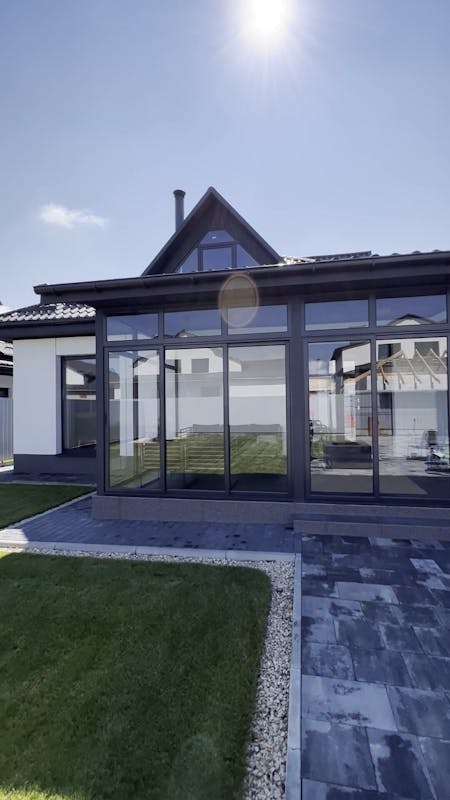 Конструкція виконана з загартованого сонцезахисного скла, яке зменшує вплив прямих сонячних променів, забезпечує комфорт і зберігає легкість простору. Прозорі панелі без рам створюють ефект відкритості та панорамного огляду, водночас захищаючи від вітру й опадів. Це ідеальне місце для барбекю, дружніх зустрічей і повноцінного релаксу просто біля вашого дому.