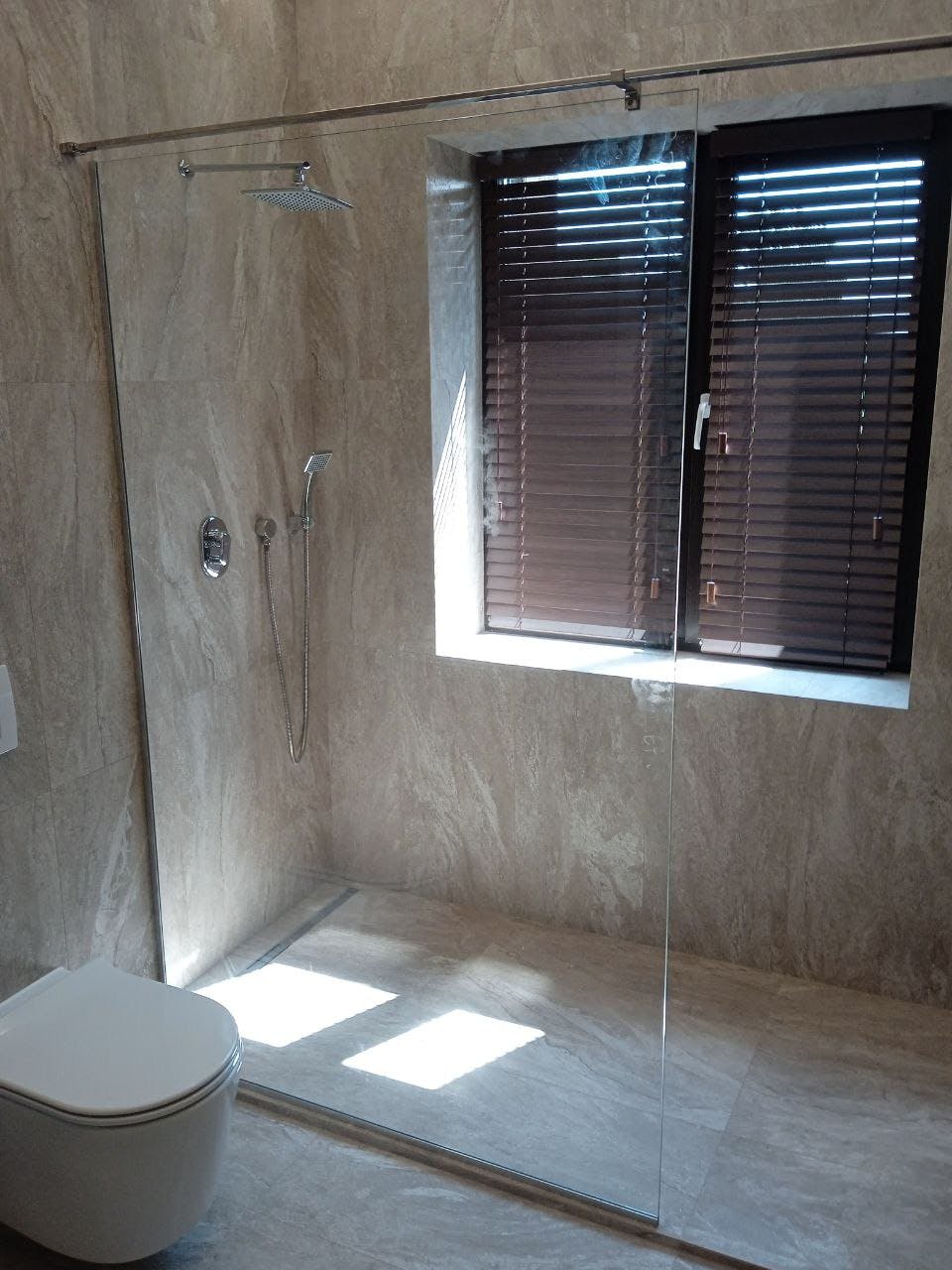 Замінили громіздку пластикову кабіну на невагоме скло 8 мм. Тепер ванна кімната виглядає просторою, а інтер'єр — сучасним та легким. Встановили все за 1 день.